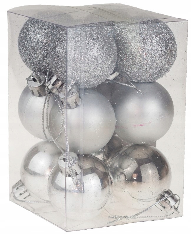 BOMBKI CHOINKOWE SREBRNE ZESTAW 12SZT