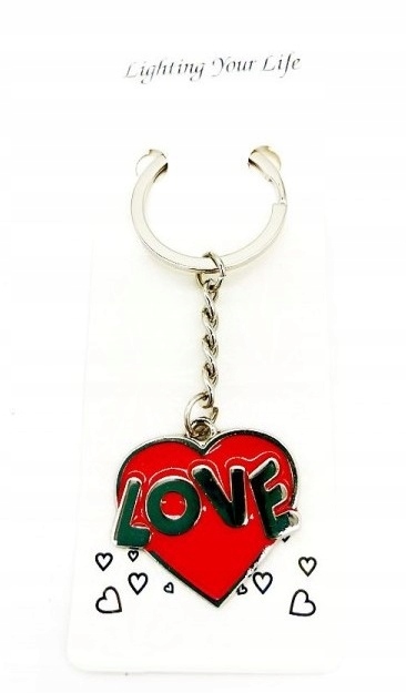 Modny breloczek w kształcie serduszka z napisem LOVE lub z cekinkami.