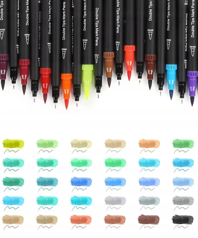 ⭐ MARKERY AKWARELOWE WODNE DWUSTRONNE – 60 KOLORÓW⭐