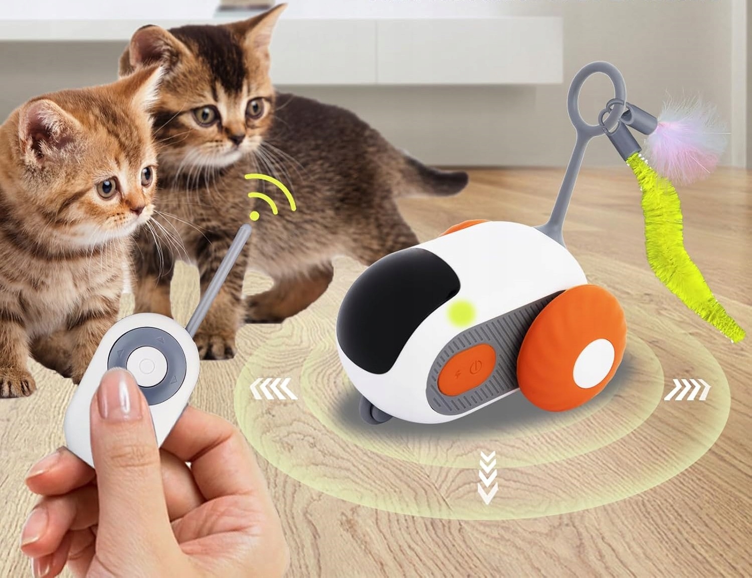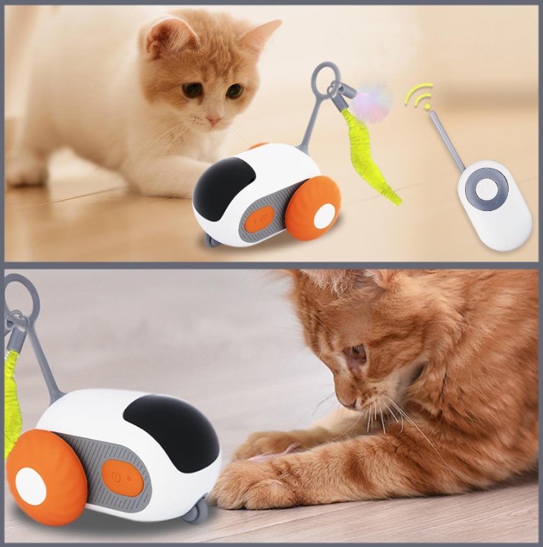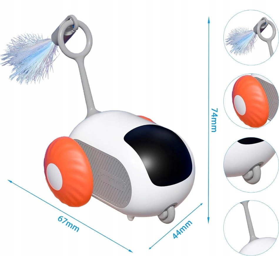 - Zdalne sterowanie i funkcja automatyczna: Zabawka jest wyposażona w pilot, który pozwala na uruchamianie i zatrzymywanie jej w odległości do 20 metrów. Dzięki temu można dostosować intensywność zabawy do potrzeb pupila.