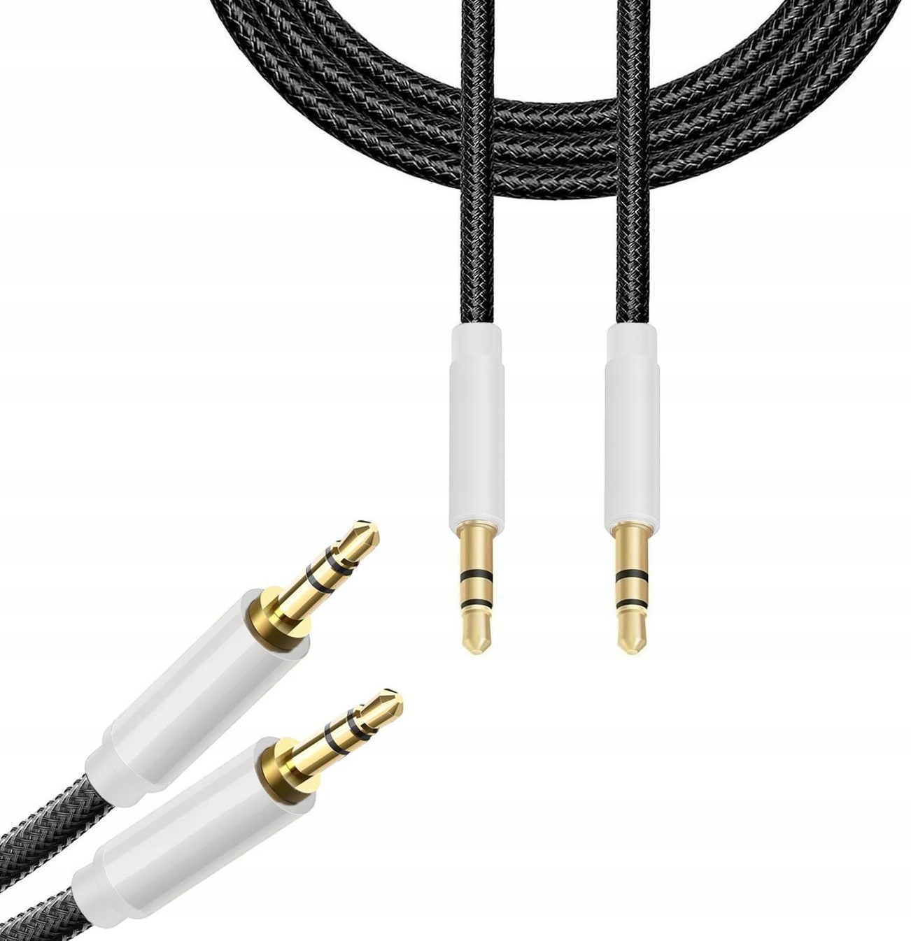 DŁUGI KABEL JACK-JACK AUX 85CM AUDIO MĘSKO-MĘSKI WZMACNIANY NYLONOWYM OPLOTEM