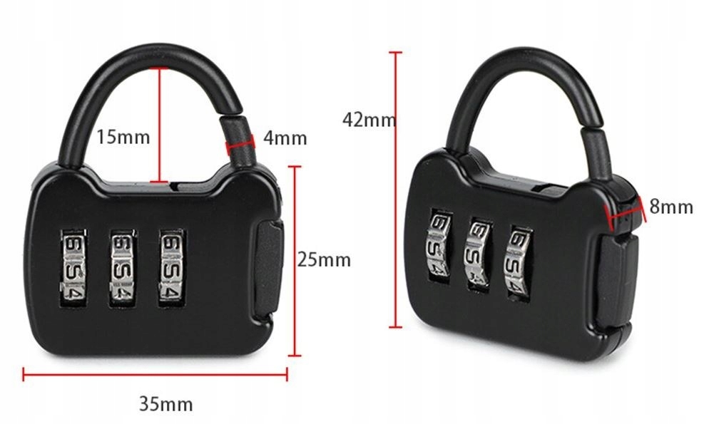 Kłódka jest niewielkich rozmiarów, dlatego zawsze możesz mieć ją przy sobie, a 3 cyfrowy kod pozwala na ustawienie aż 1000 kombinacji.