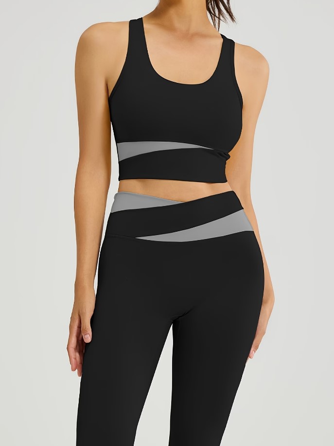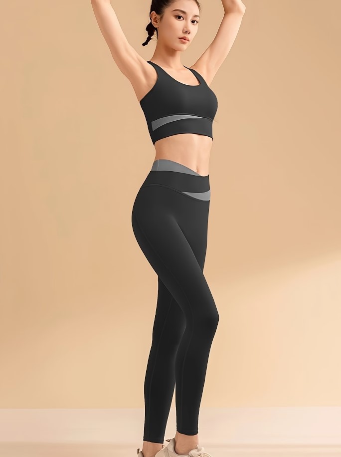Odkryj doskonałą harmonię komfortu i stylu z naszym kompletem damskim sportowym, który zawiera stanik i legginsy. Idealny dla aktywnych kobiet, które cenią sobie wysoką jakość wykonania oraz funkcjonalność.