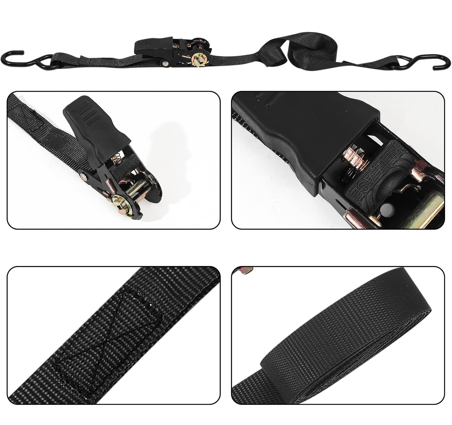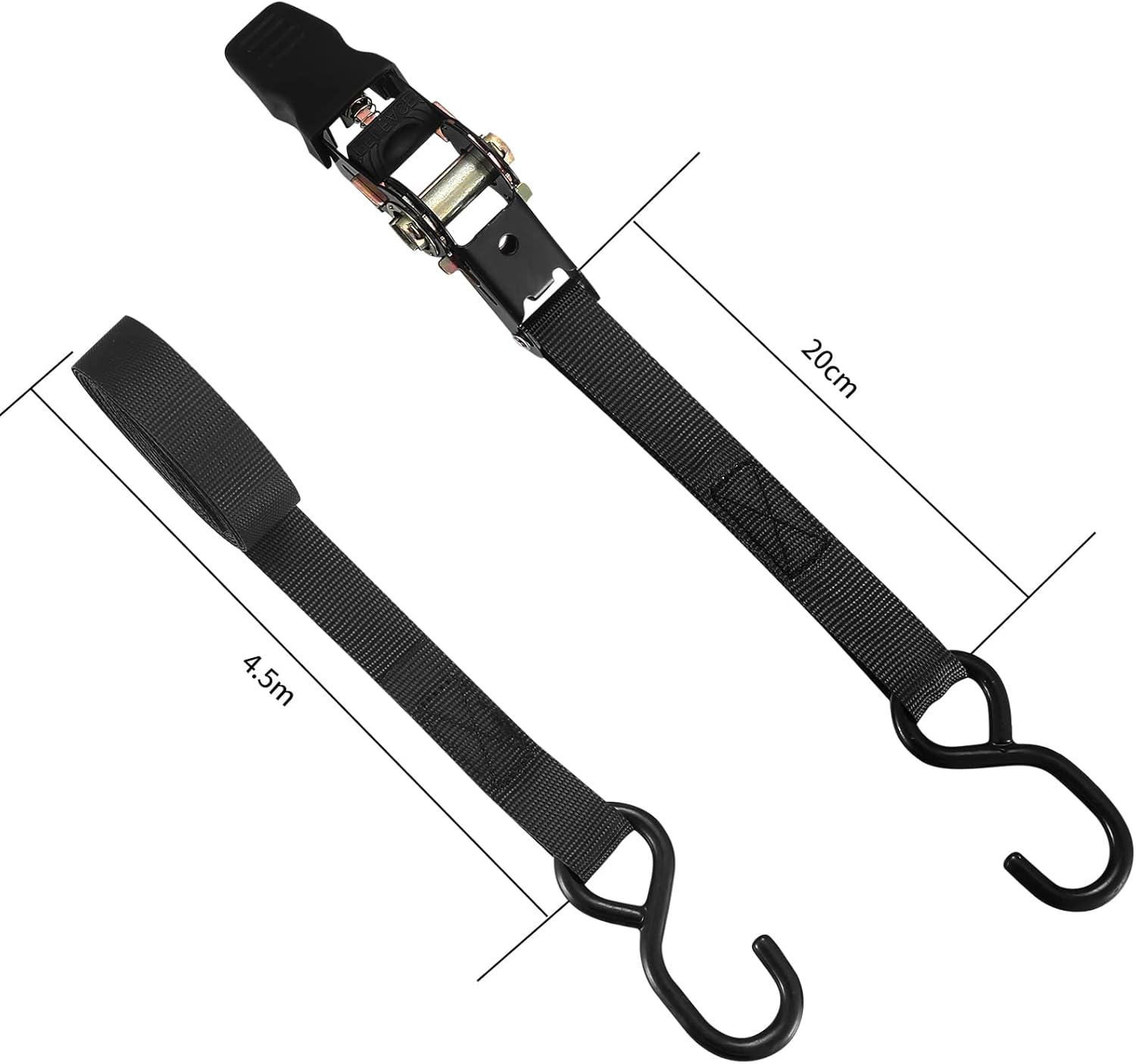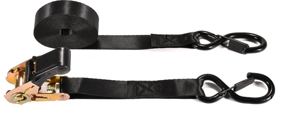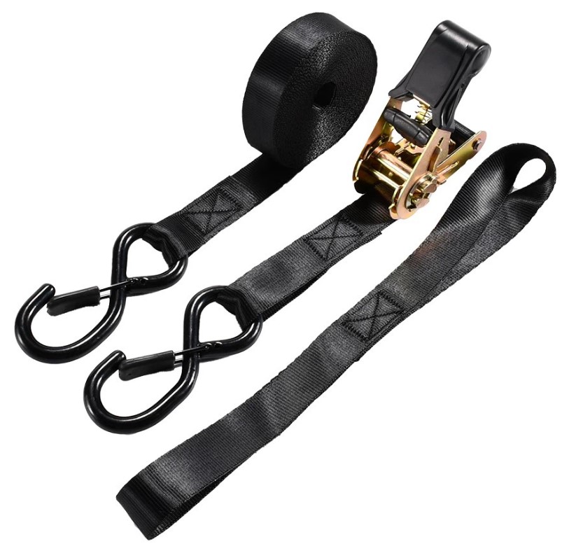 Końcówki pasa wyposażone są w mocne stalowe haki typu S z zabezpieczeniem PVC, które chroni powierzchnie przed zarysowaniami.