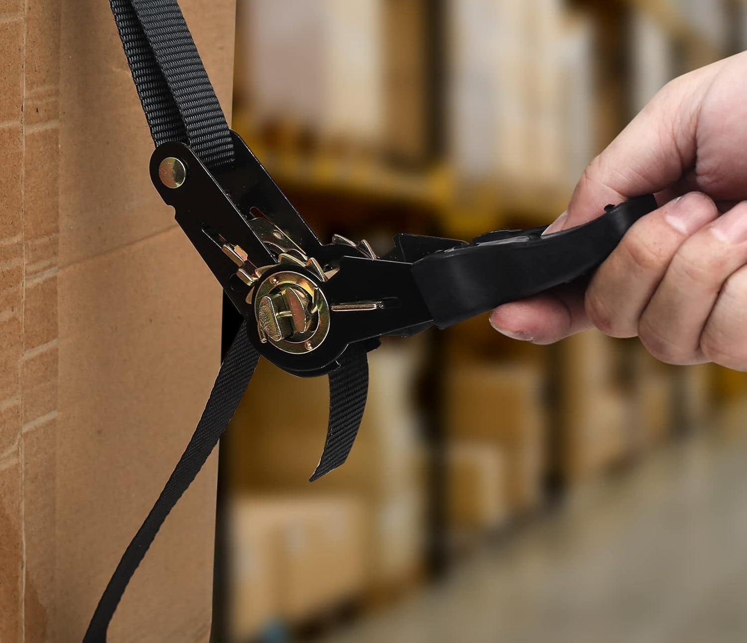 Pas transportowy z grzechotką został zaprojektowany z myślą o szybkim i bezpiecznym mocowaniu ładunku.