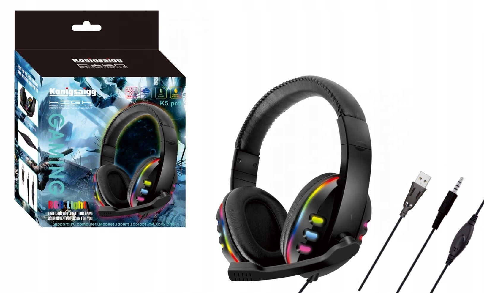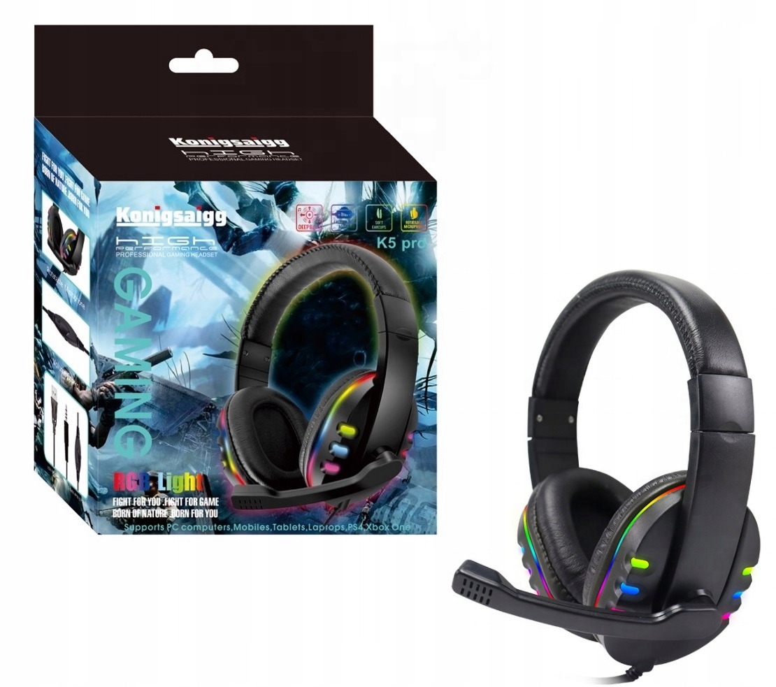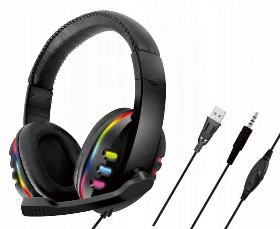 SŁUCHAWKI GAMINGOWE LED DLA GRACZY MIKROFON JAKOŚĆ