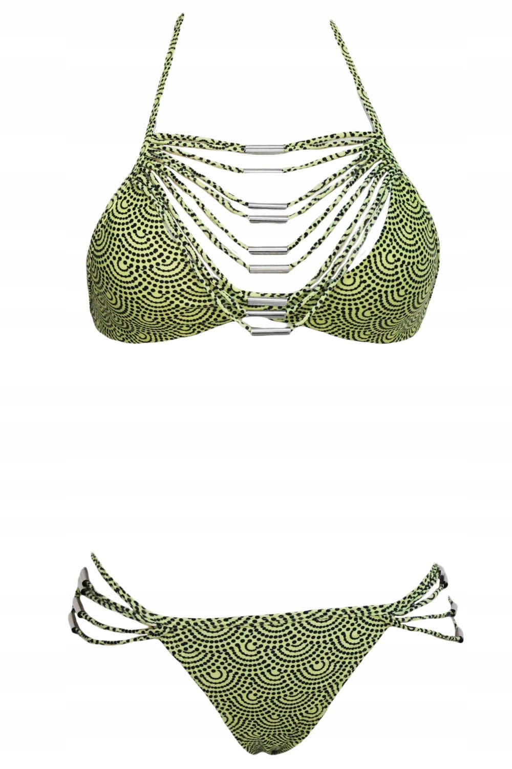 - biustonosz wiązany na plecach idealnie podtrzymuje biust, podkreślając jego jędrność i efektowny wygląd. Atrakcyjne dodatki na przodzie kusząco podkreślają piersi optycznie je powiększając i przyciągając wzrok.