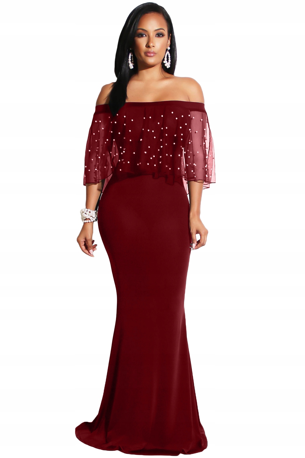 WIECZOROWA SUKIENKA MAXI SEKSOWNIE PODKREŚLAJĄCA FIGURĘ Z OZDOBNYM TIULEM