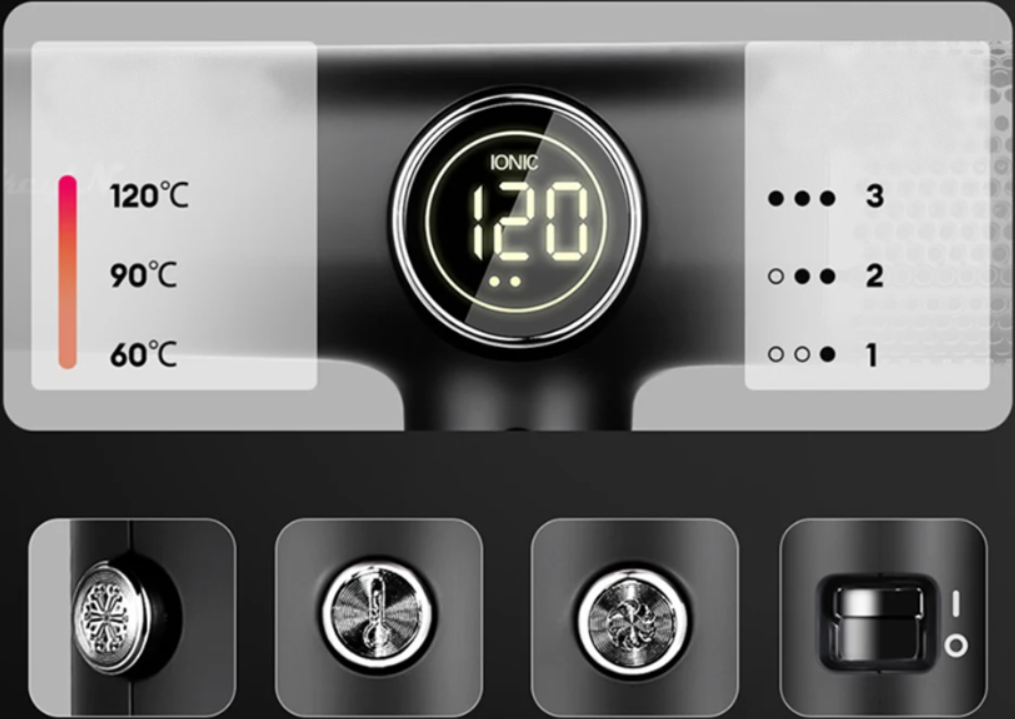 ✅ 3 prędkości i 3 tryby temperatury (cold/60°C/90°C/120°C)