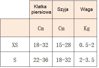 - Obwód klatki piersiowej: 22-36 cm