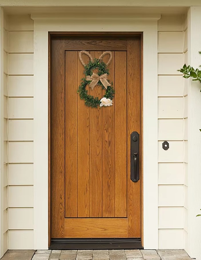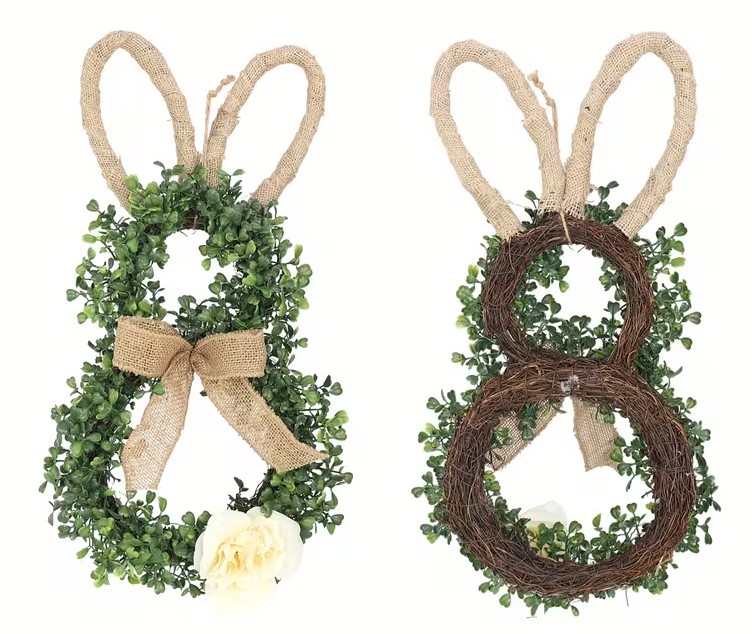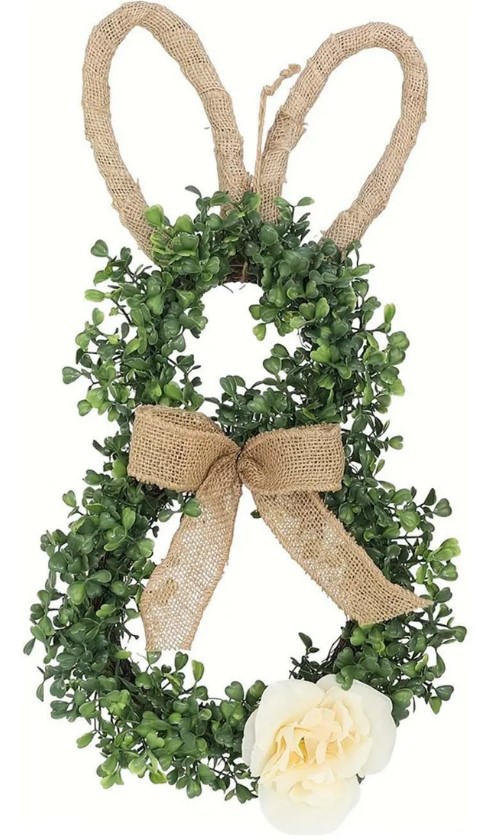 Wiosenno-wielkanocny stroik na drzwi w kształcie zajączka